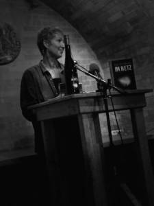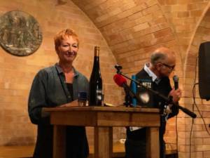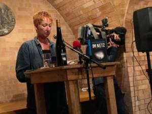 Eva Rossmann liest im Weinkeller der Familie Döllinger